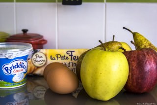 突然好想吃甜點,可是麵包店賣的都好貴,一小塊隨便都要兩三歐還不如自己做,看看家裡有派皮、有蘋果、有西洋梨,那就來做甜派吃吧!蘋果加西洋梨剛好是絕配呢