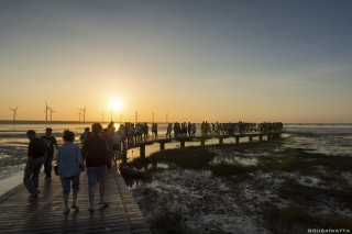 Nous, nous y sommes rendus en fin d’après-midi en voiture et en famille, une magnifique jetée en bois vous conduit jusqu’à la seule zone où les gens sont autorisés à enlever leurs chaussures afin de patauger dans les eaux boueuses puis d’admirer la fusion entre le ciel et l’océan dans de magnifiques dégradés de couleurs…